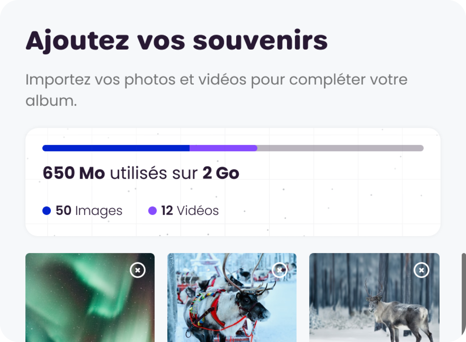 Vous avez le droit à 3 albums qui peuvent chacun contenir jusqu’à 2 Go.
